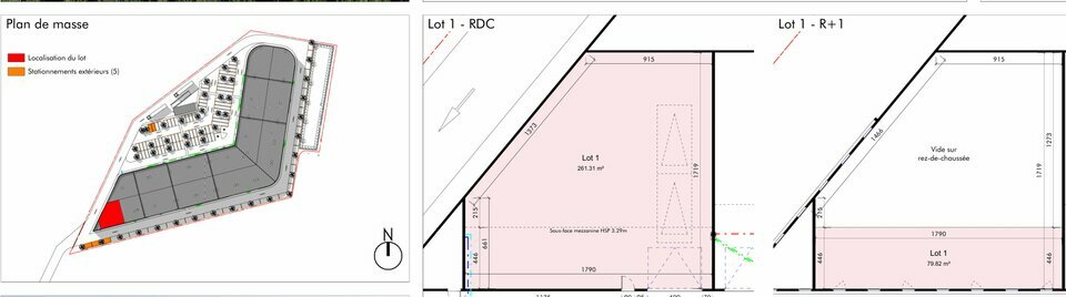 Lots 1 de 341,13 M2 composé de 261,31 M2 en RDC + 79,82 M2 en Mezzanine lourde