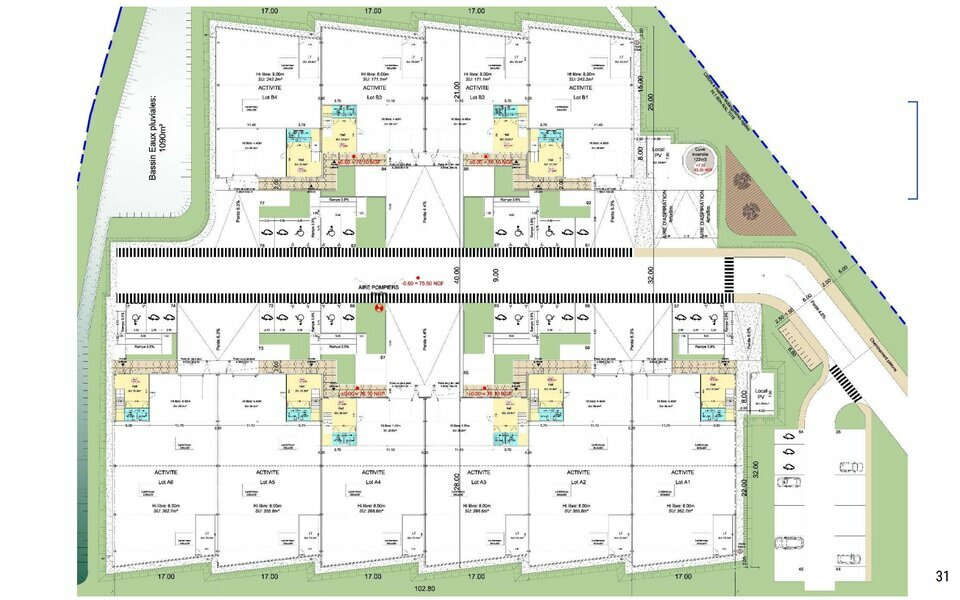 Ces espaces modernes sont conçus pour répondre aux exigences des entreprises d'aujourd'hui : aménagement flexible, parkings, espaces verts et zones de détente pour le confort des équipes.