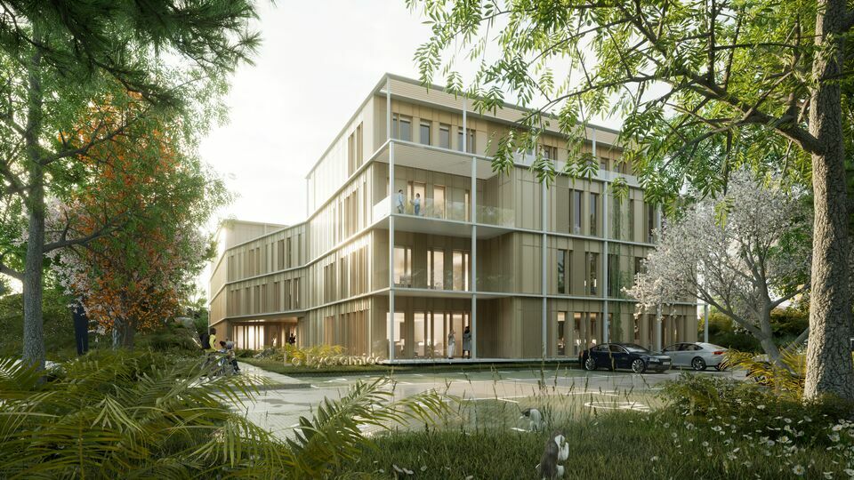 Le projet, d'environ 3 413 m² de bureaux, reflète une démarche architecturale contemporaine et bioclimatique, avec l'ambition d'obtenir le label BBCA. La construction fait la part belle aux matériaux biosourcés, notamment le bois, utilisé pour les façades et les attiques en R+3.