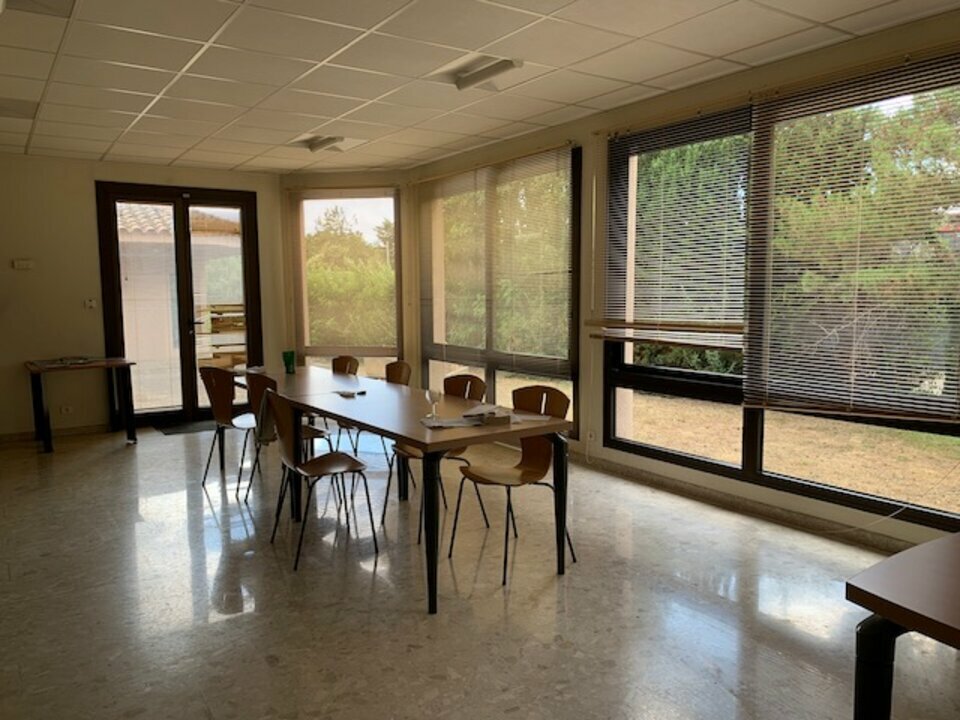 AVIGNON SUD ZONE COMMERCIALE LA CRISTOLE, SITE TERTIAIRE A VENDRE composé de 911 m2 de bureaux environ et terrain privatif clôturé. Parcelle de 4407 m2. Immeuble sur 3 niveaux, sous sol, RDC, étage. Murs en béton, toit terrasse avec tuiles en périphérie. Sols carrelés ou moquettés. Terrain clôturé, portail métallique. Environ 22 places de parking extérieur.