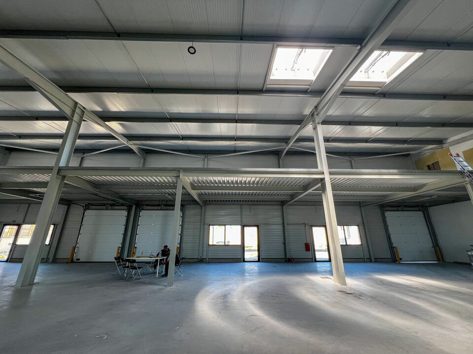 Le bâtiment est divisible en cellules d'environ 330 m² avec stockage en rez-de-chaussée et mezzanine à aménager en bureaux.