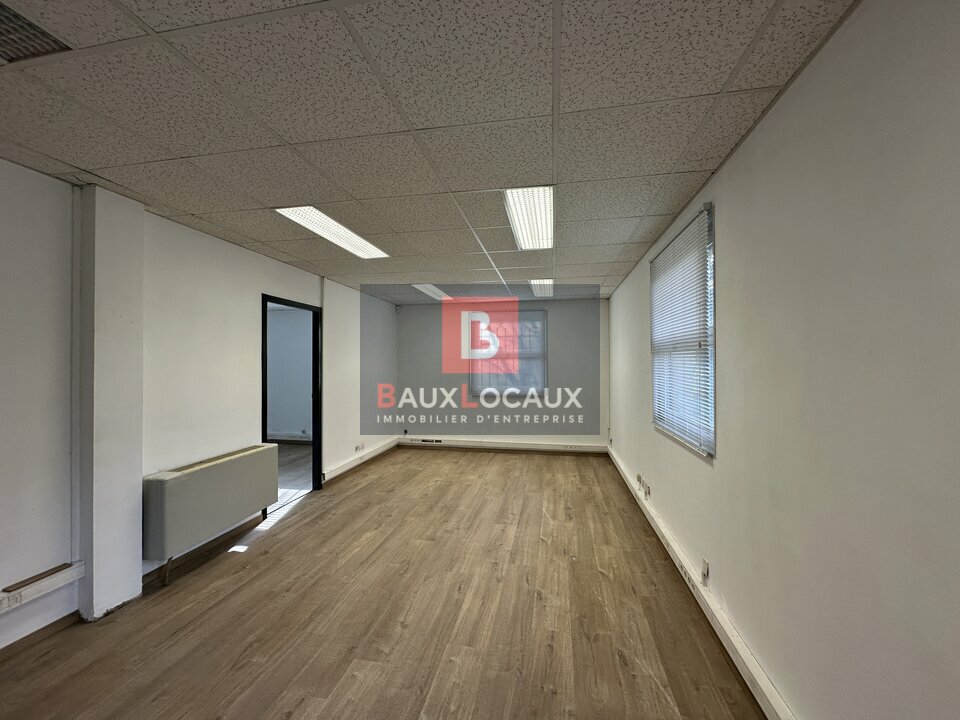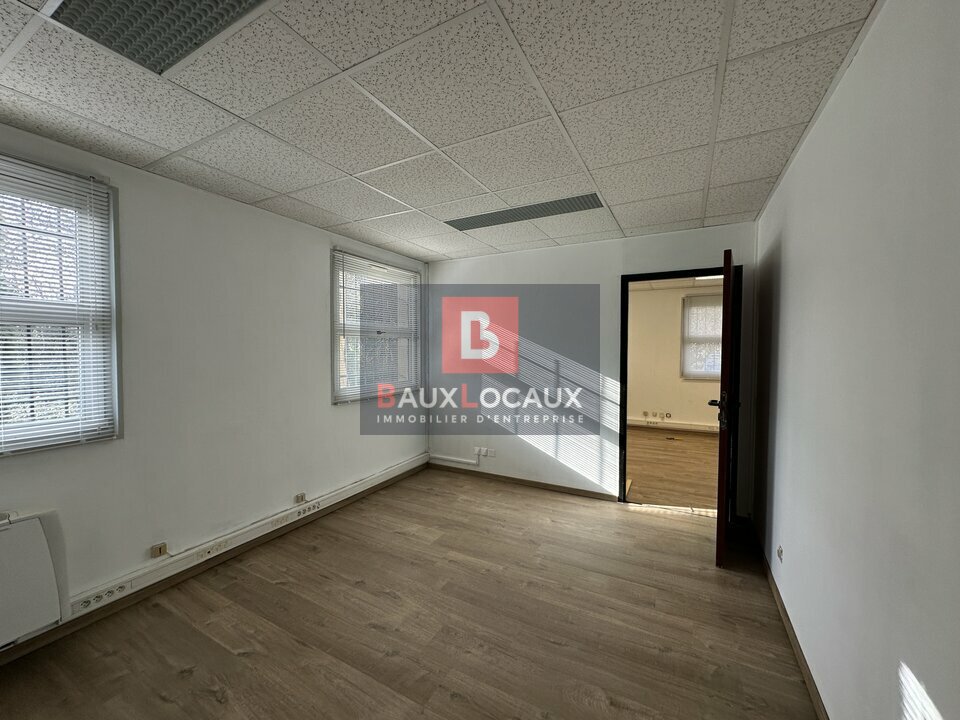 À louer bureaux d'une superficie totale de 56 m² au RDC, composé de deux espaces distincts : un premier local de 44 m² et un second de 12 m², séparés par un couloir commun.