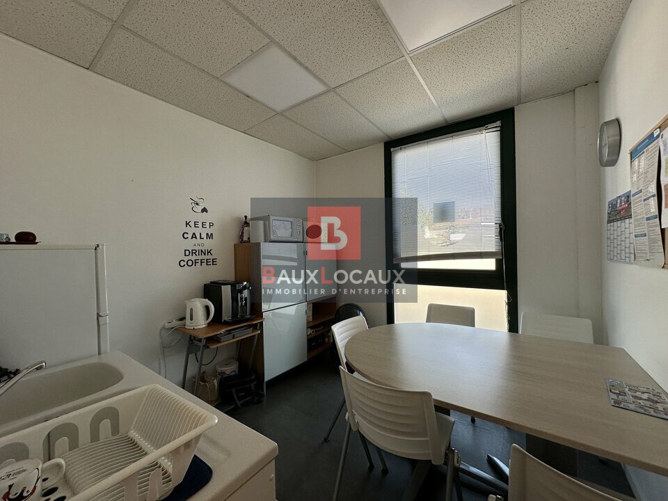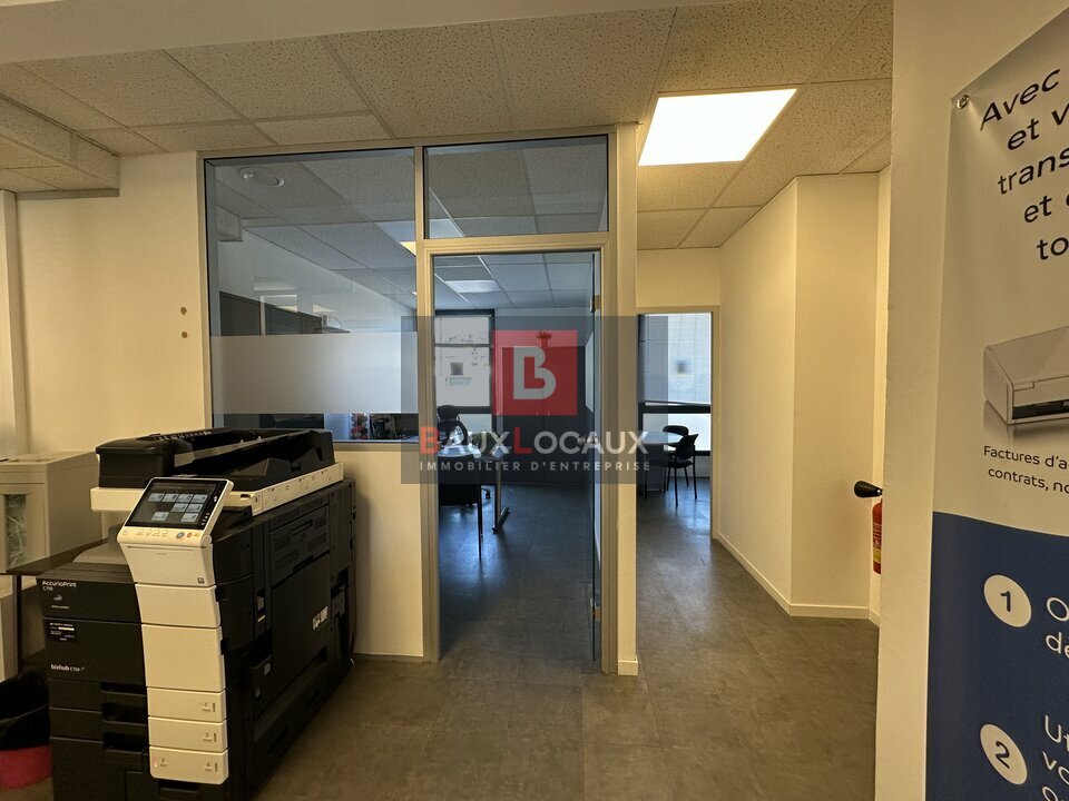 L'espace se compose d'un grand hall d'accueil desservant sept bureaux, dont une salle de réunion, une cuisine/réfectoire permettant de prendre les repas sur place, ainsi que deux locaux à archives offrant de belles capacités de rangement.