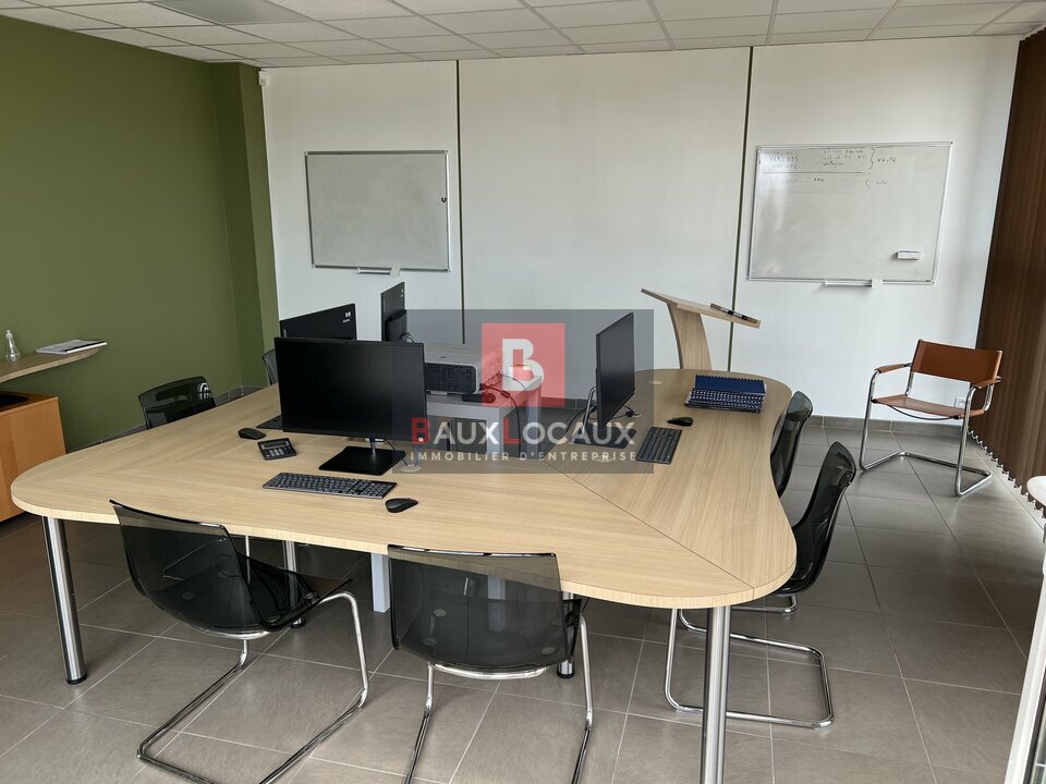 À l'étage, vous trouverez plusieurs bureaux indépendants, une salle de réunion ouvrant sur une agréable terrasse, une cuisine équipée ainsi que des sanitaires.