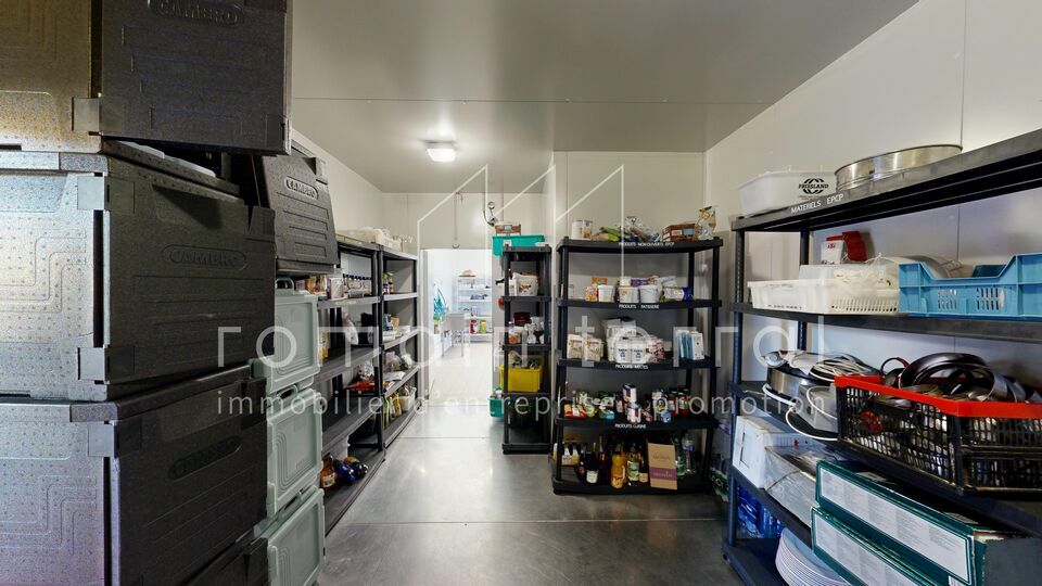 L'ensemble des pièces du bâtiment sont carrelées et équipées de plinthes à gorges arrondies, d'une peinture pour contact alimentaire et de siphons reliés à un bac dégraisseur situé à l'avant du bâtiment.