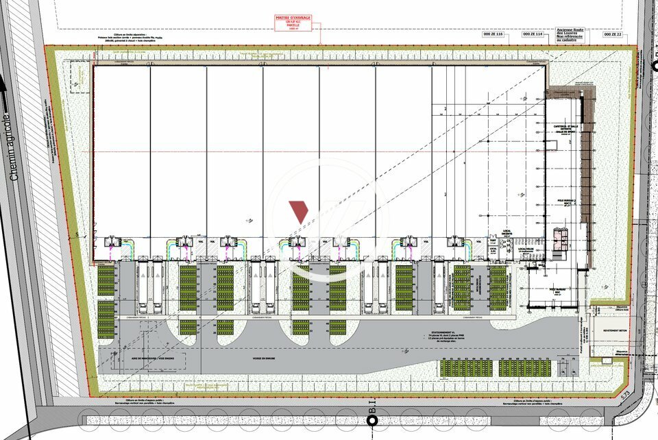 Chaque lot est équipé d'une porte sectionnelle, d'un quai de chargement et d'un accès piéton indépendant. 6 places de parking privatives sont incluses.