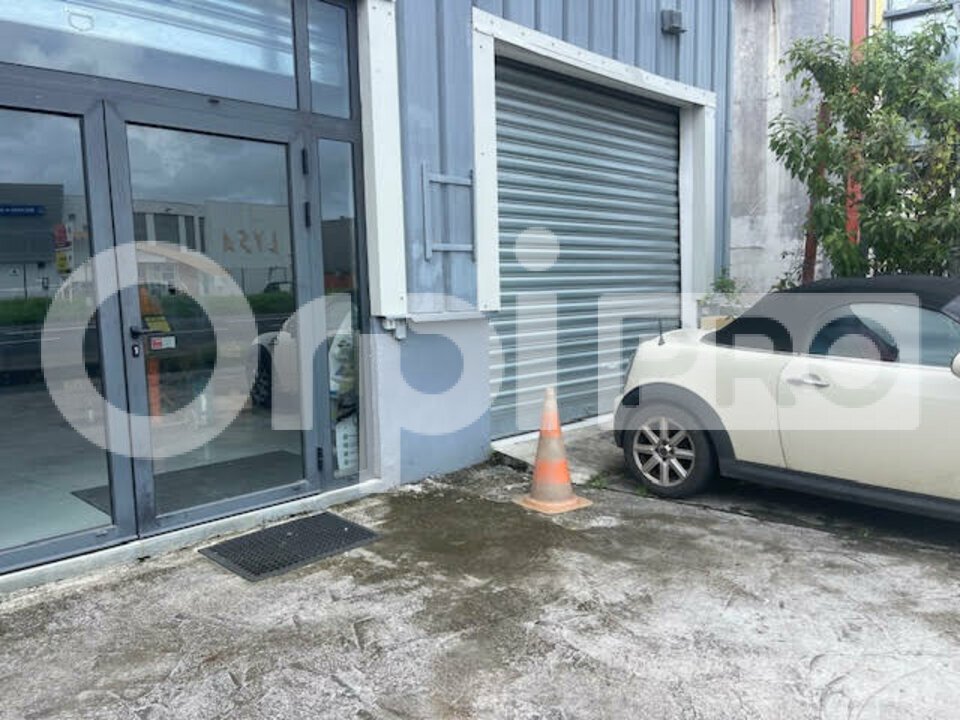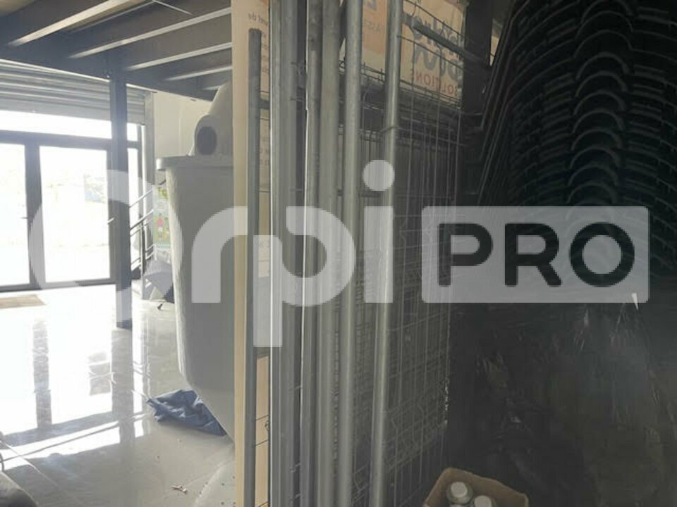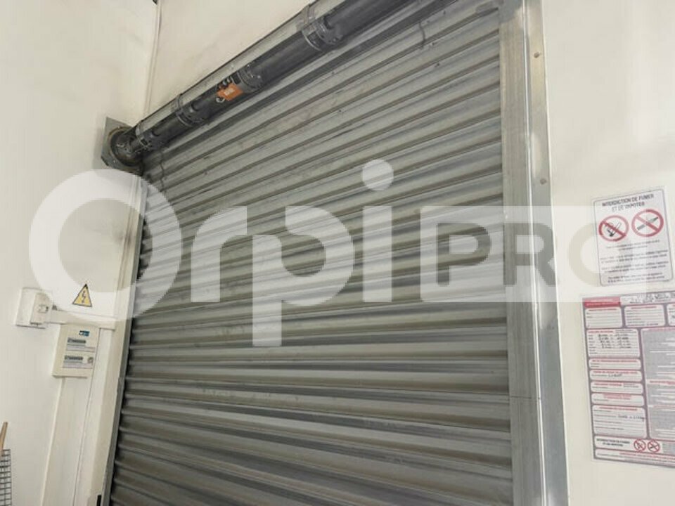 A louer un local carrelé avec bloc sanitaires et 2 ouvertures , une par volet roulant pour un espace dépôt et la seconde par une porte vitrée et vitrine protégées par un volet roulant avec une surface d environ 135 m2
