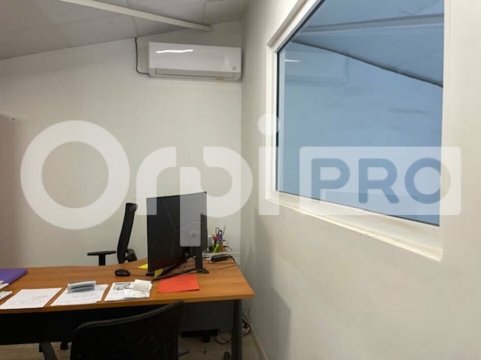 Une mezzanine d environ 44m2 à été réalisée afin d installer vos bureaux en open space , ainsi qu'un bureau fermé