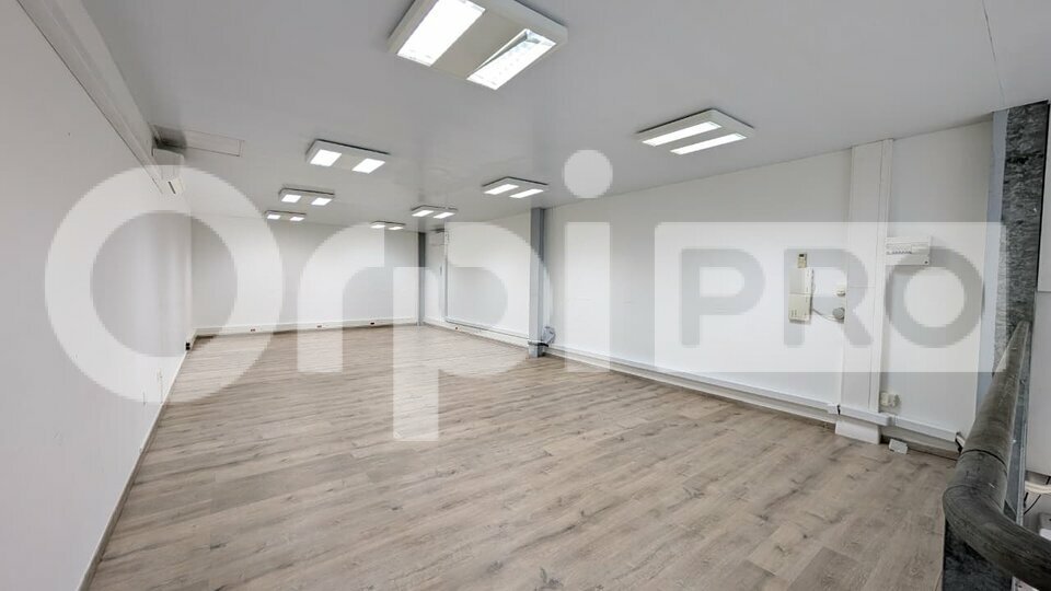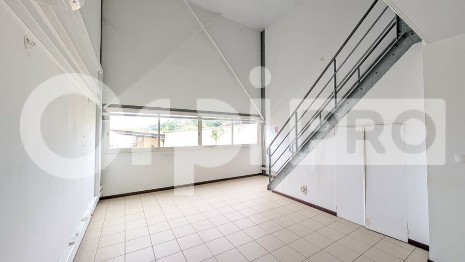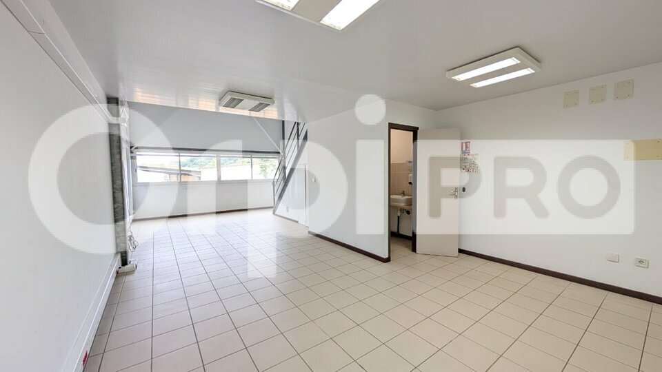 Il comprend un bureau, un vaste open space ainsi qu'une mezzanine de 35 m², idéale pour un espace supplémentaire (réunion, stockage ou poste de travail):