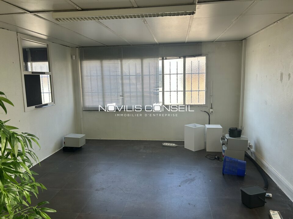 La partie bureau est accessible par une porte piétonne sur l'avant du bâtiment, desservant un accueil et 3 espaces cloisonnés. Un second espace bureau est aménagé à l'étage. Sur l'arrière du bâtiment, la partie dépôt présentant une grande hauteur, est accessible via un rideau métallique. L'accès se fait via un passage privatif sur le côté du bâtiment.