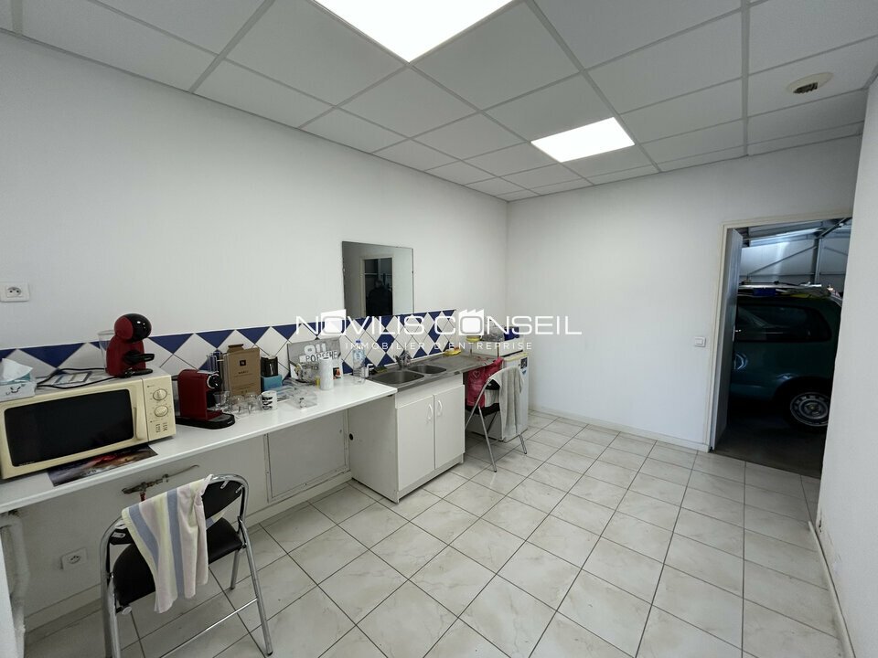 Ce bien dispose de bureaux lumineux d'environ 100 m², comprenant un espace open space, un bureau cloisonné, une kitchenette et un sanitaire privatif.