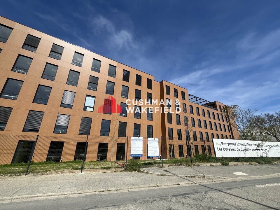 Le bâtiment offre une architecture moderne et dynamique, est livré entièrement terminé, hors cloisons et hors câblage informatique