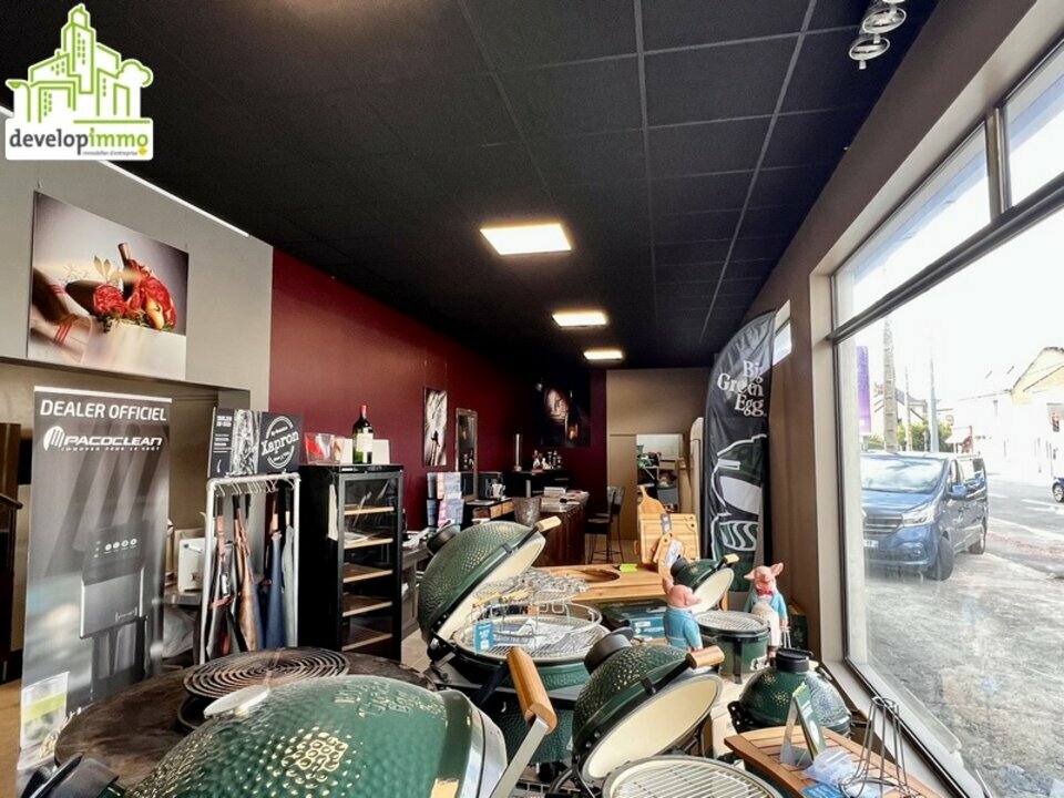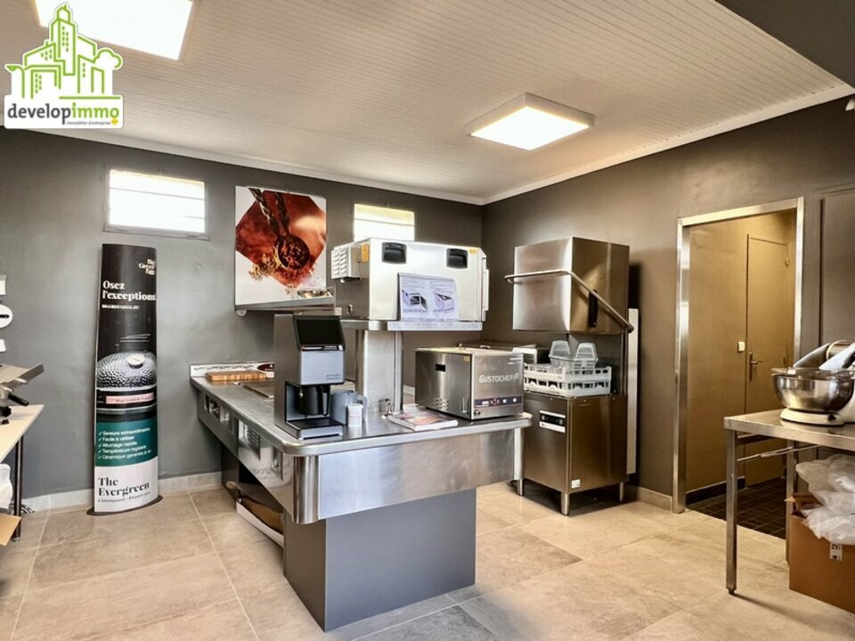 CAEN, murs commerciaux de 140 m² environ. Possibilité étalage en devanture. Comprenant un show-room de 70 m², un atelier de 50 m², un bureau de 15 m², douche et WC. Hauteur sous plafond de 3,3 m.
