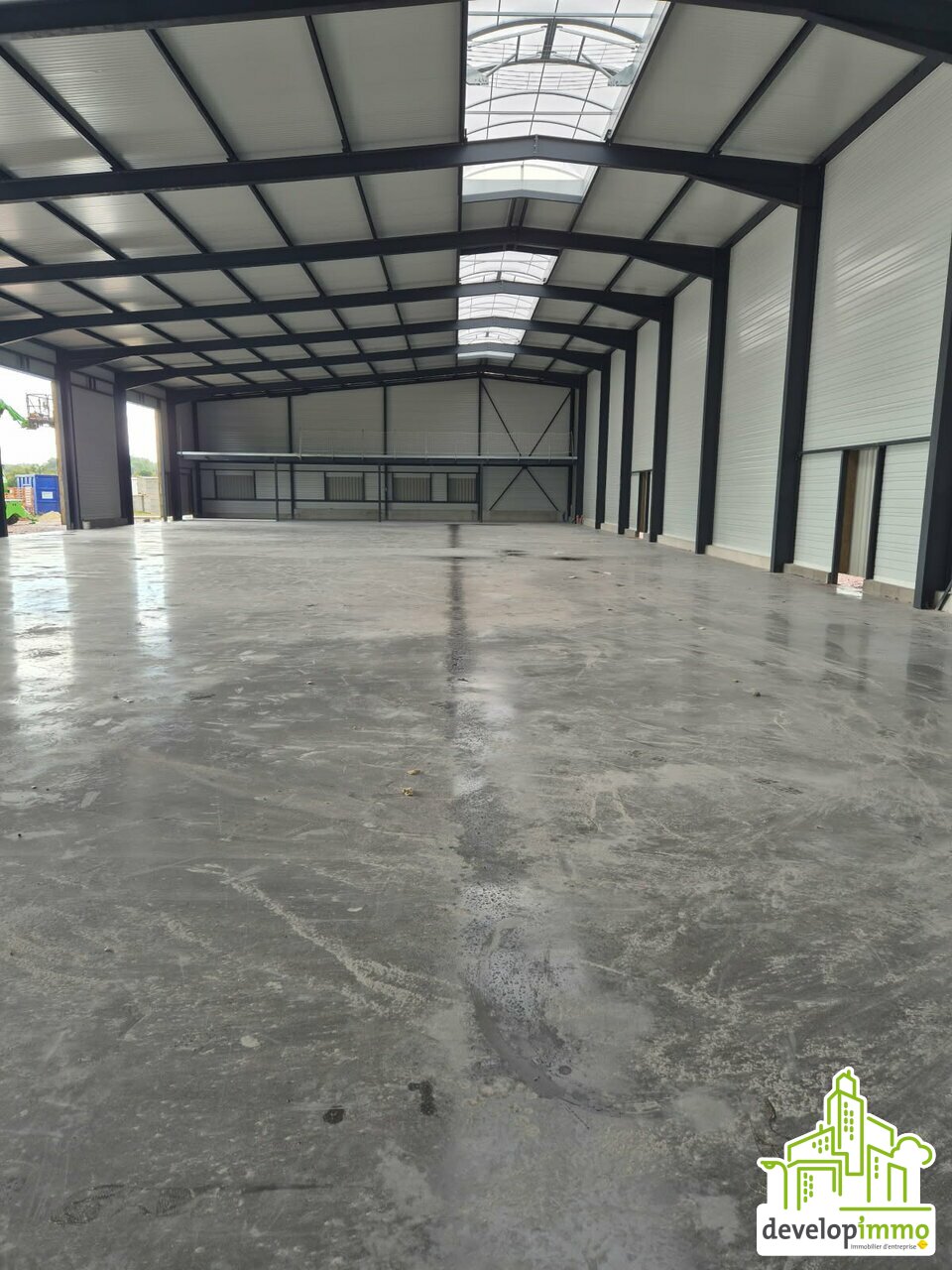 Dalle béton, charpente métallique, HSP 6 -7 m, 5 portes sectionnelles électriques 80 m² de bureaux d'accompagnement
