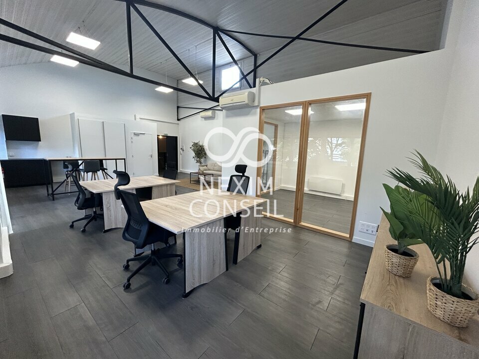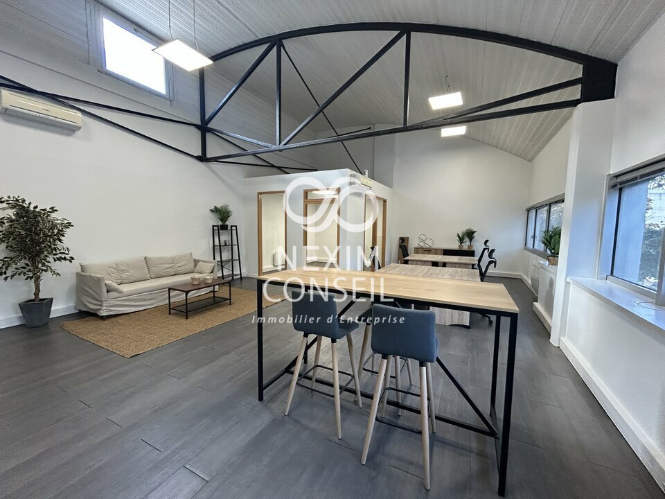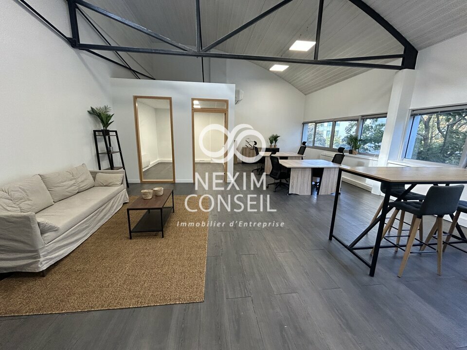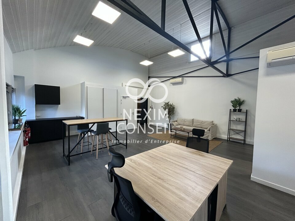 D'une surface totale de 85 m² (quote-part des parties communes incluse), il comprend un espace privatif cloisonné, un coin cuisine, la climatisation, une belle hauteur sous plafond ainsi qu'un espace de rangement.