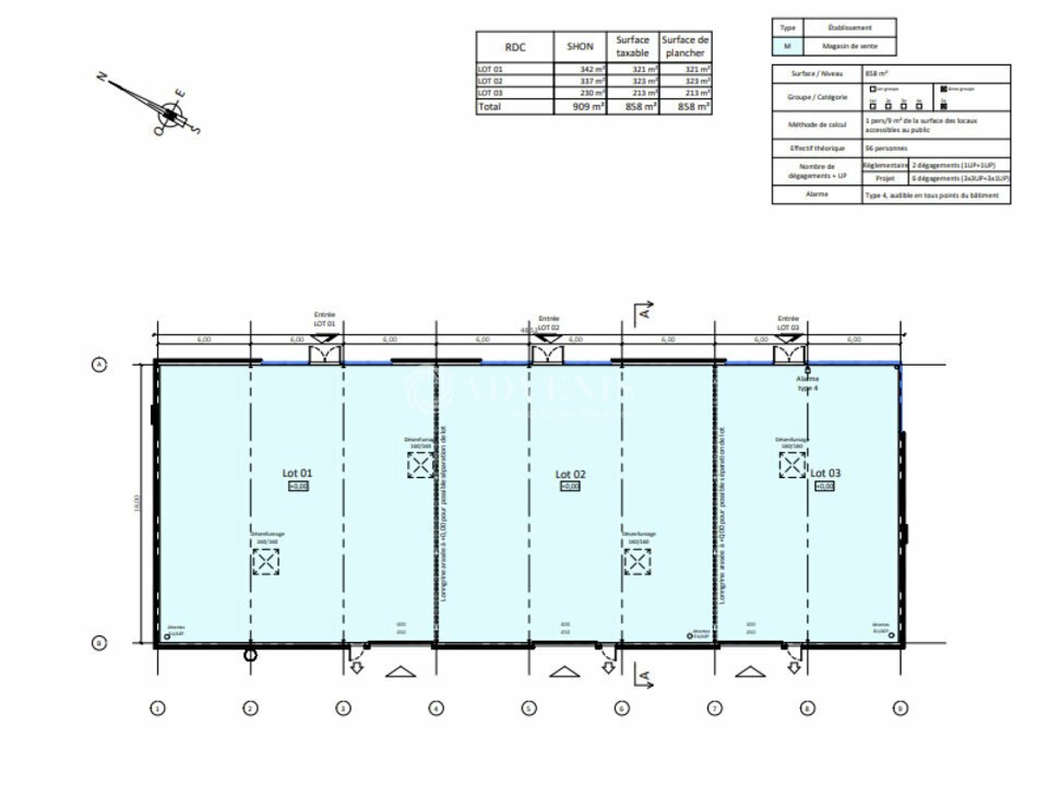 Ces locaux sont divisibles en 3 cellules, de 230 à 342 m², aménageables et adaptables selon le cahier des charges du Preneur. L'ensemble est implanté sur un terrain de 25,35 ares, idéalement situé en angle de rue avec une bonne visibilité.