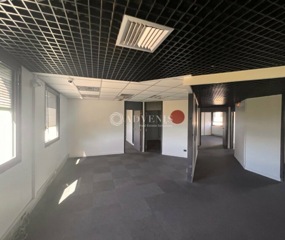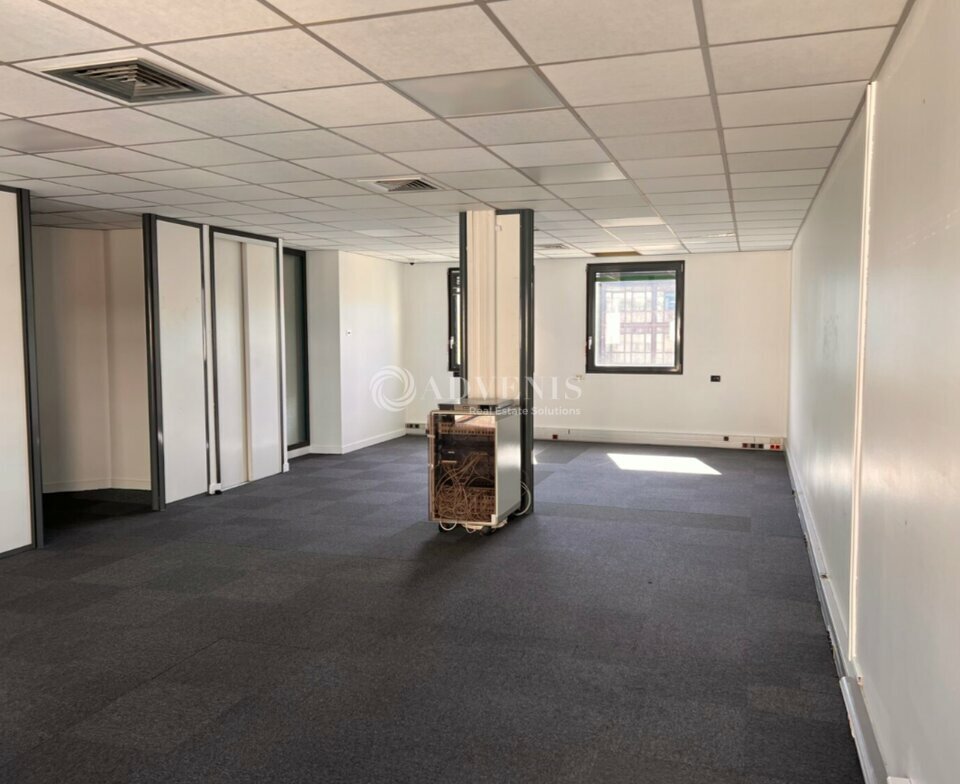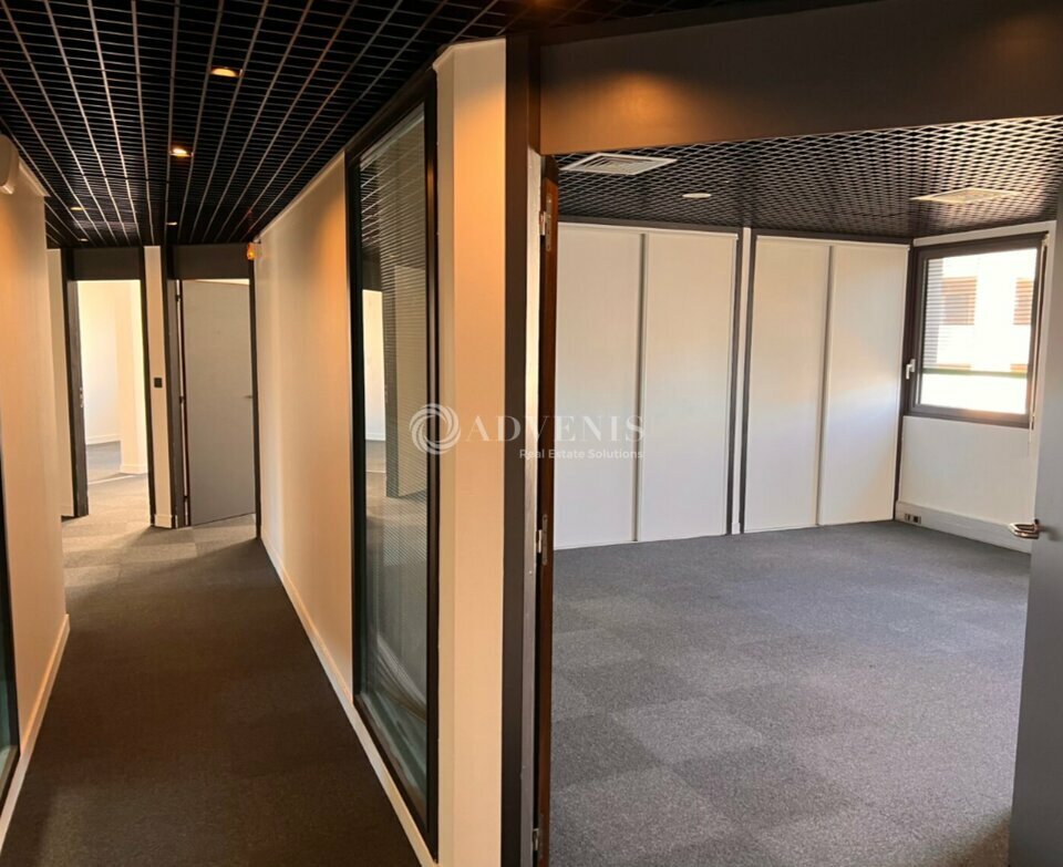 Bureaux cloisonnés, au 3e étage d'un immeuble tertiaire.
