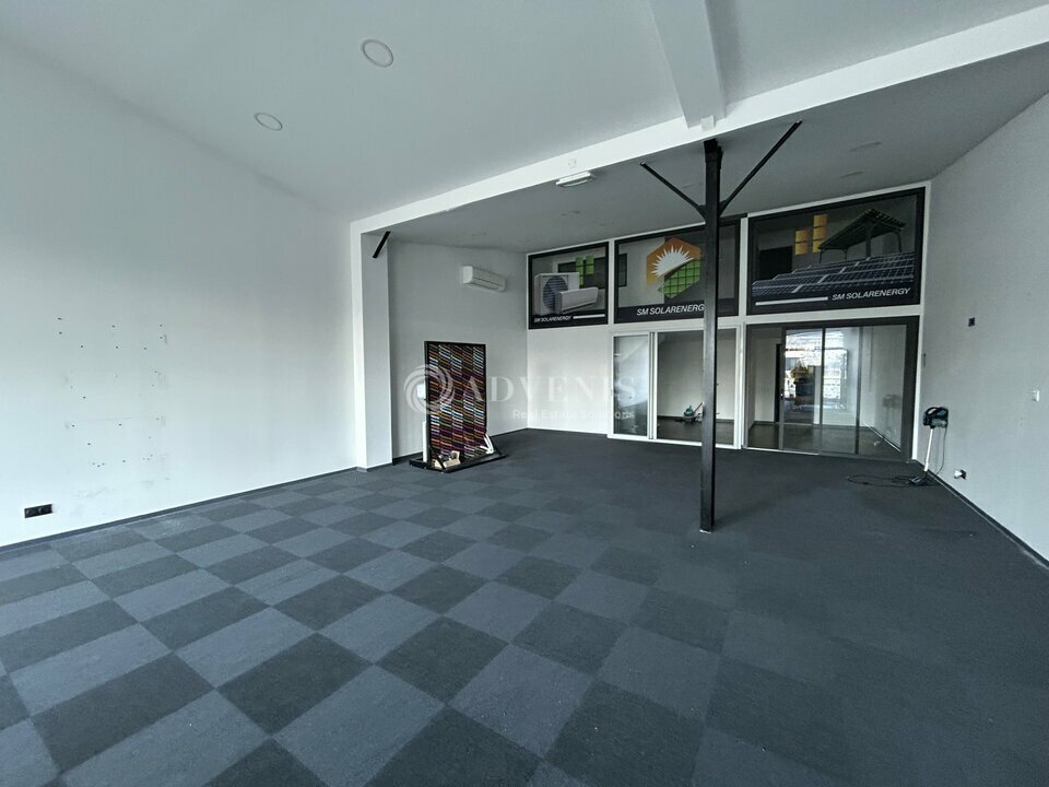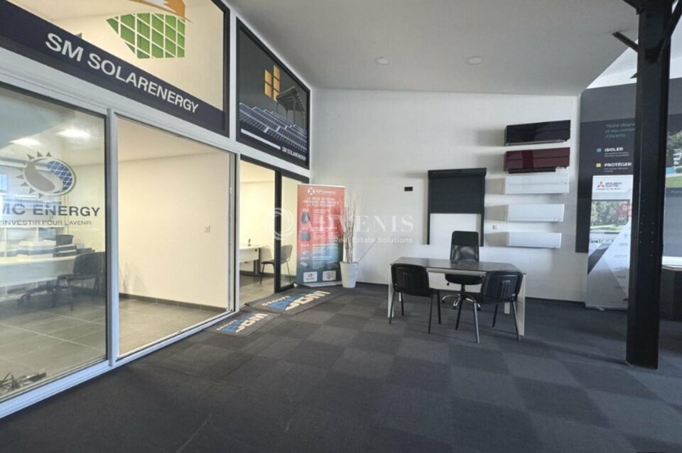 Ce bien offre une surface d'environ 130 m² en rez-de-chaussée, complétée par une mezzanine de 30 m² comprenant trois bureaux.